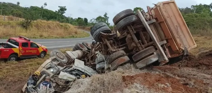 Nas rodovias estaduais, outro acidente fatal (foto) vitimou um caminhoneiro de 43 anos na GO-417, em Aurilândia, no sábado (11/10). Eduardo Moreira Silva perdeu o controle do caminhão que transportava calcário, saiu da pista e o veículo tombou. Equipes do Corpo de Bombeiros e do Samu encontraram o motorista já sem vida, preso às ferragens.