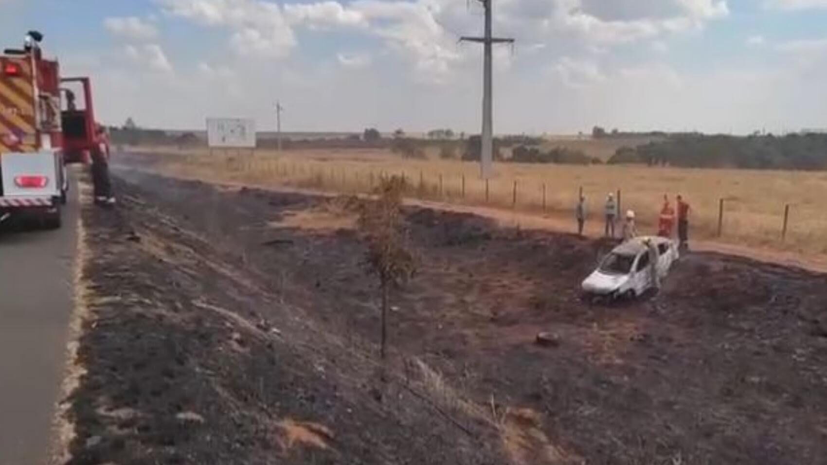 Capotamento seguido de incêndio deixou uma pessoa morta e quatro feridas na BR-153 em Morrinhos