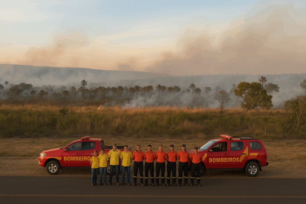 Bombeiros e brigadistas contêm incêndio próximo ao Parque Terra Ronca