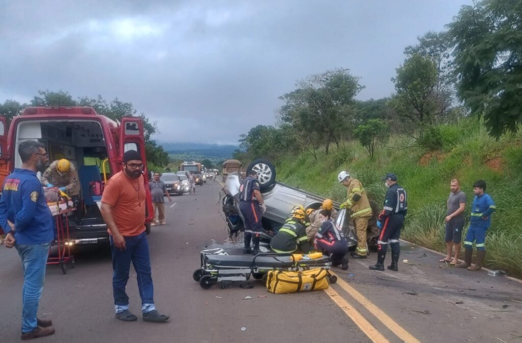 A equipe do 16º Batalhão Bombeiro Militar foi acionada por volta das 12h10 e, ao chegar ao local, encontrou um Chevrolet Onix tombado sobre a pista, no sentido Jataí/Mineiros. Dentro do veículo estavam duas mulheres, de aproximadamente 70 e 68 anos, e um homem de 78 anos. Apesar do impacto, todos estavam conscientes, orientados e presos ao cinto de segurança, apresentando ferimentos leves a moderados.