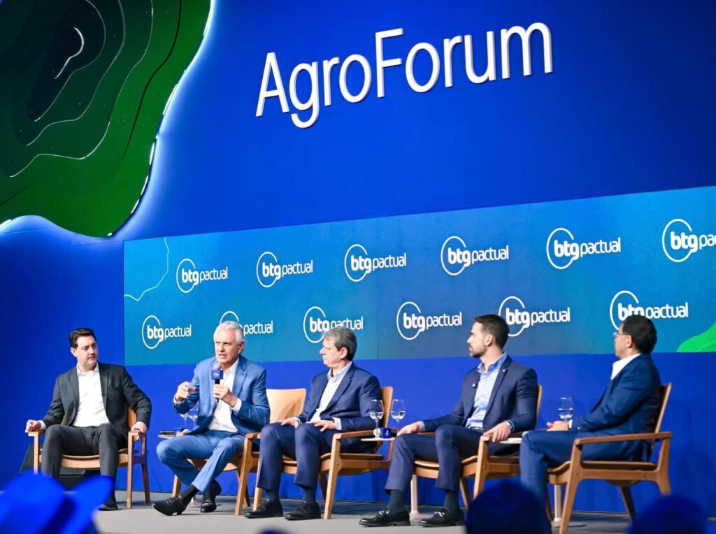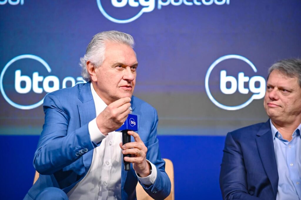 Além de Caiado, os governadores Eduardo Leite (PSD), do Rio Grande do Sul, Tarcísio Freitas (Republicanos), de São Paulo, e Ratinho Júnior (PSD), do Paraná, debateram no painel: “Unindo Forças pelo Agro”, mediado pelo economista-chefe da BTG Pactual, Mansueto Almeida.