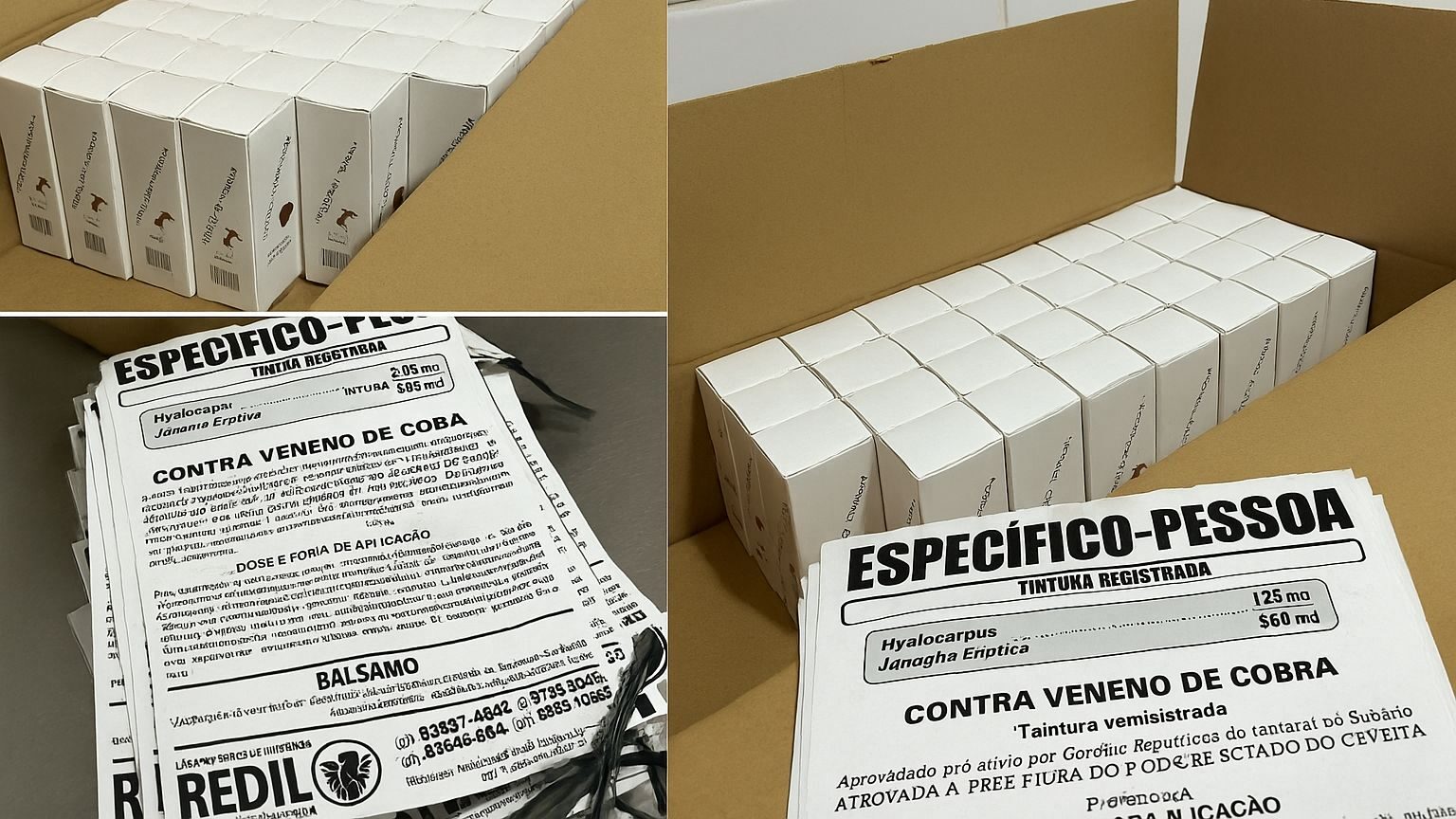 “O produto contém extratos de plantas como raiz de cobra, conhecidas por propriedades antialérgicas e coagulantes que podem auxiliar em casos de envenenamento. No entanto, a bula apresenta informações enganosas ao afirmar ser ‘cura infalível’, usando registros de 1920 que já não possuem validade legal”, constatou a investigação.