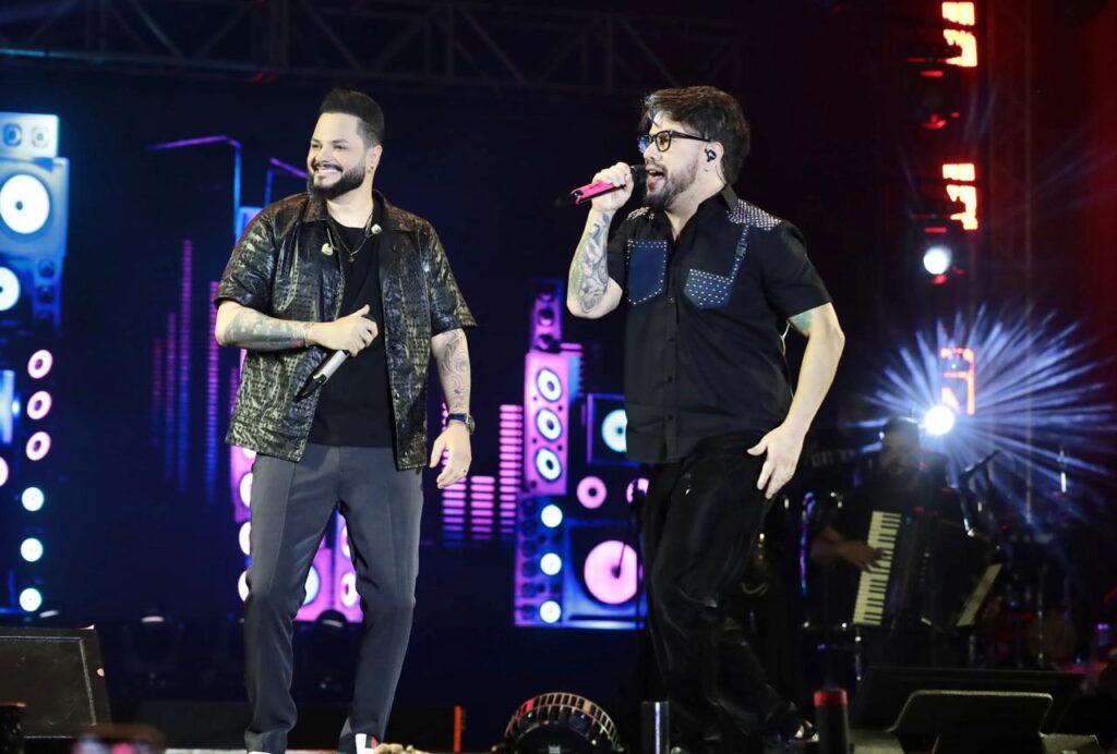 A dupla Diego e Victor Hugo foi a grande atração da penúltima noite do Aparecida é Show 2025, realizada nesta sexta-feira (26/9), na Cidade Administrativa Maguito Vilela. No palco, os sertanejos apresentaram músicas que marcaram a carreira, como Facas, parceria com Bruno e Marrone, que esteve no topo das paradas em 2021, além do recente sucesso Tubarões, a faixa mais tocada no primeiro semestre deste ano.