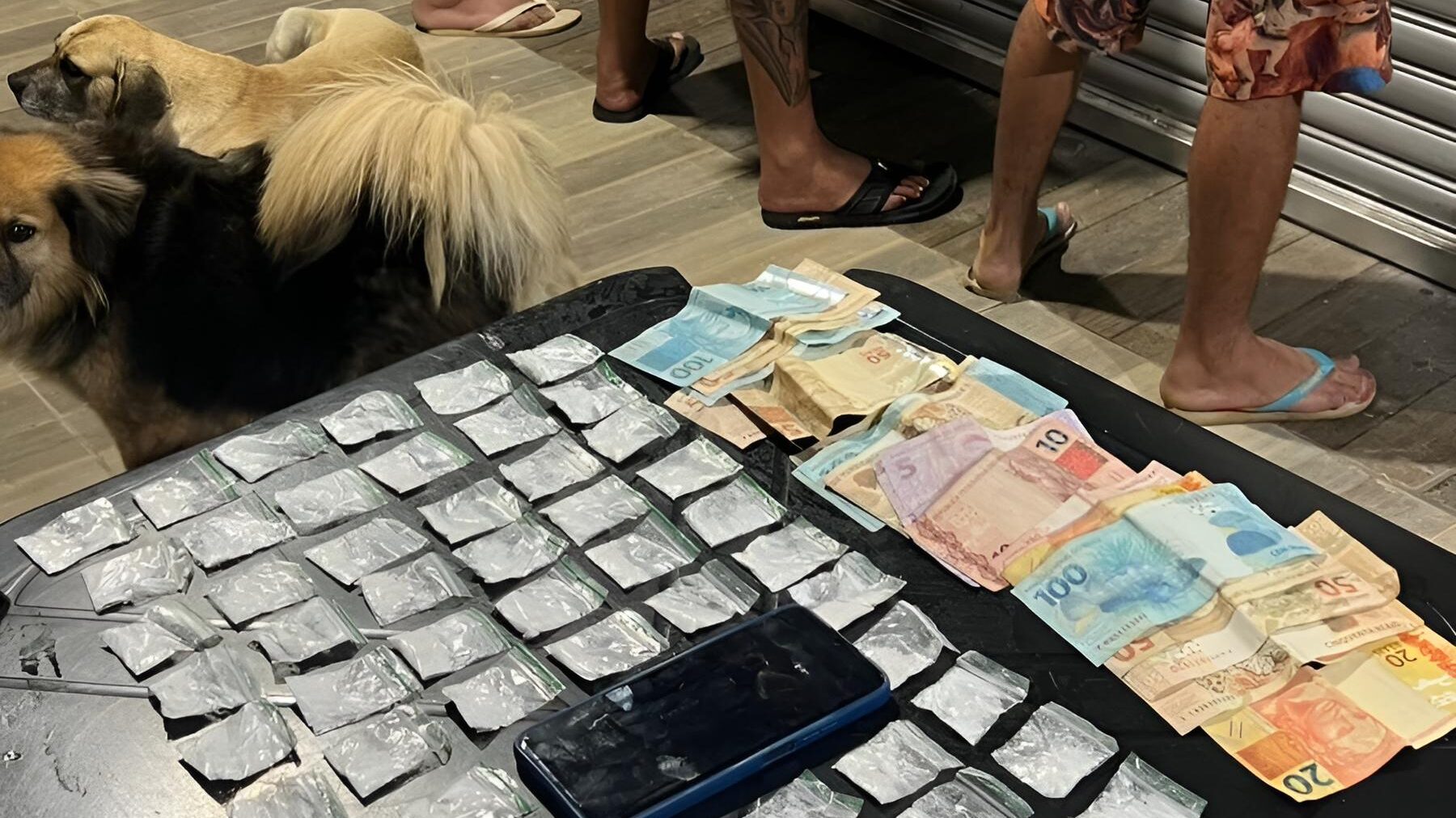 Ao todo, três pessoas foram detidas no local — o proprietário e dois comparsas — após equipes policiais flagrarem movimentação típica do tráfico e tentativas de fuga quando a operação foi deflagrada. Durante as buscas, os agentes apreenderam 71 porções de cocaína embaladas e dinheiro trocado, possivelmente proveniente da venda de drogas.