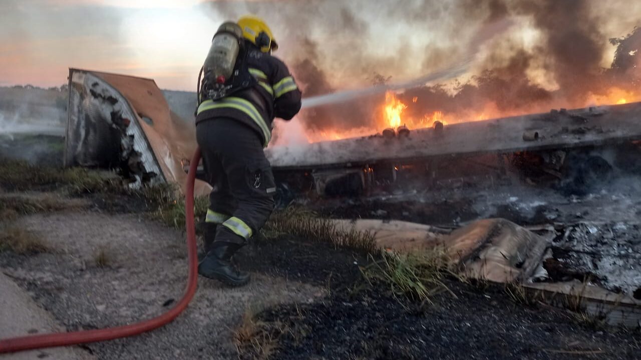 Também na tarde deste sábado (5/7), bombeiros militares atuaram no combate a um incêndio em um veículo de grande porte com carga na BR-153, no município de Professor Jamil. O ocorrido foi registrado no km 577 da rodovia, próximo ao povoado Rochedinho.